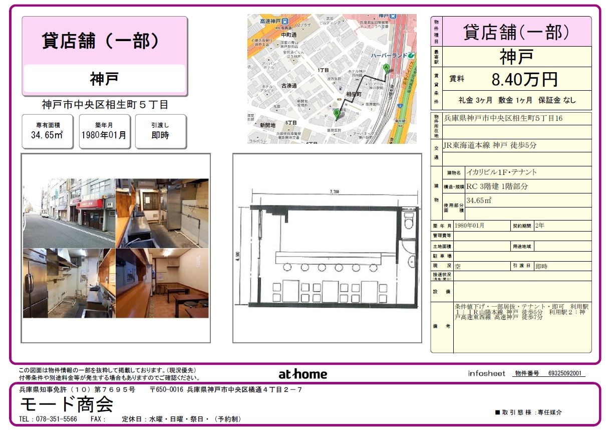 神戸駅5分の飲食店向けテナント・夏のオープンに向けて、条件サービスします!